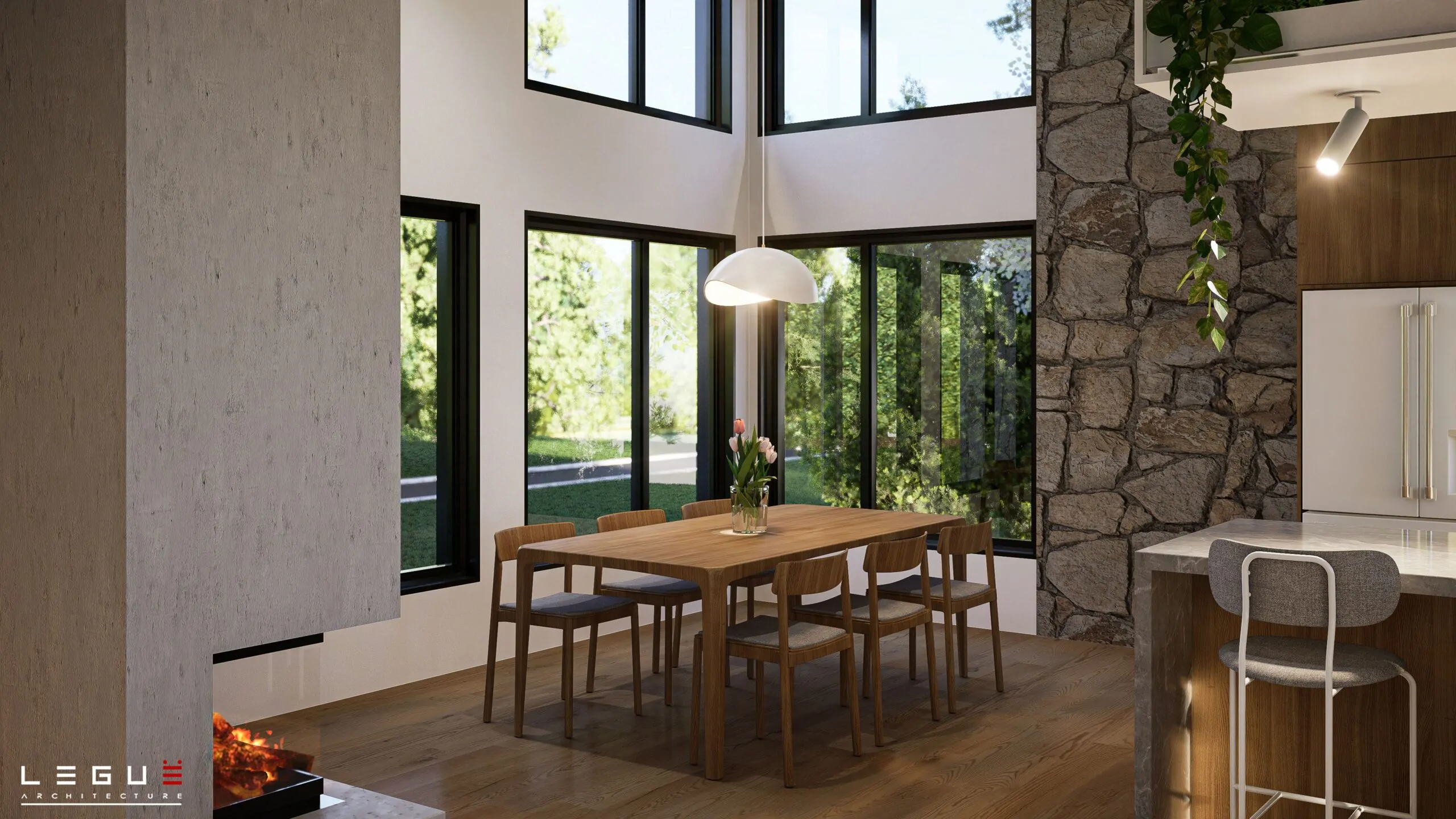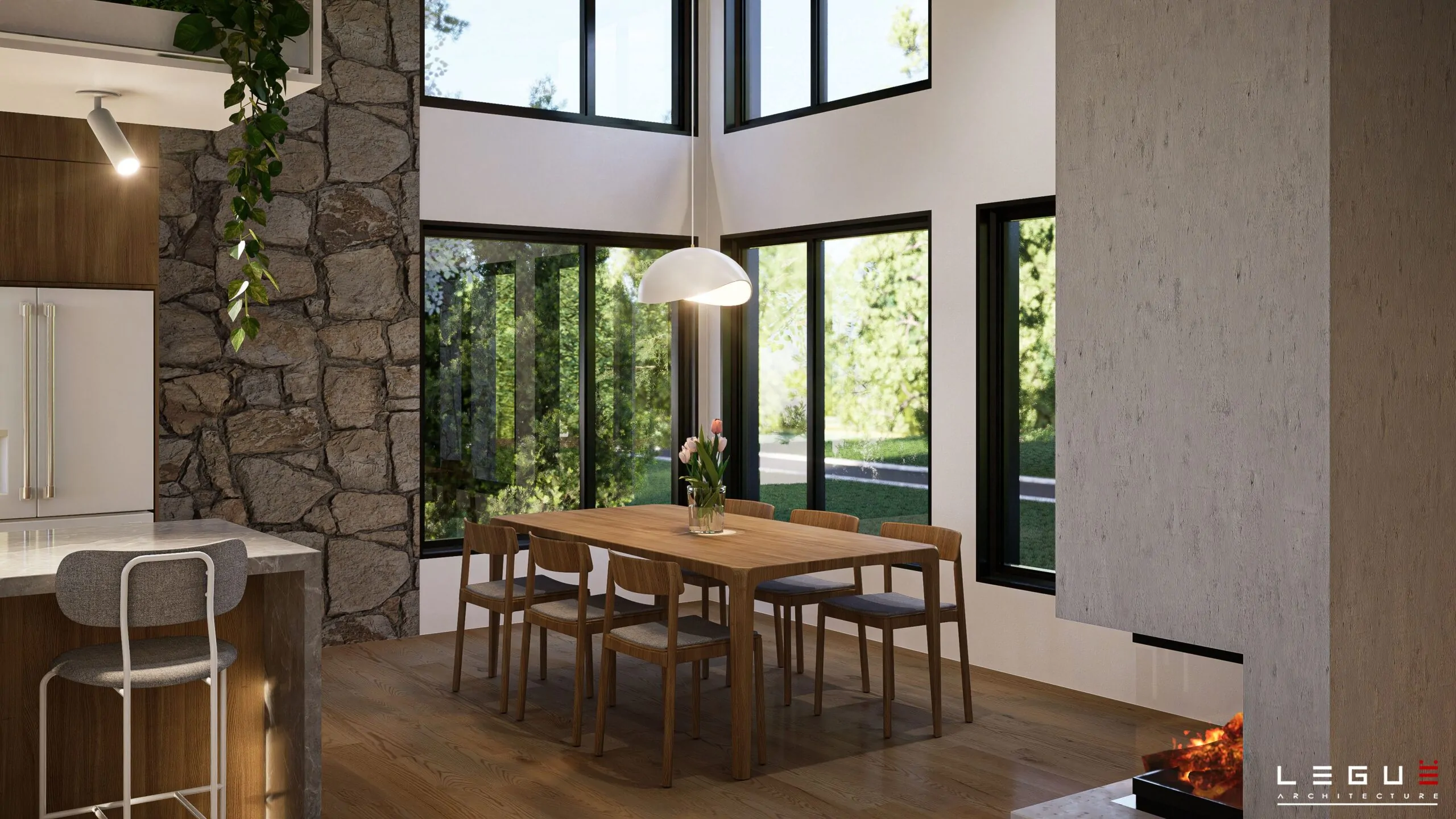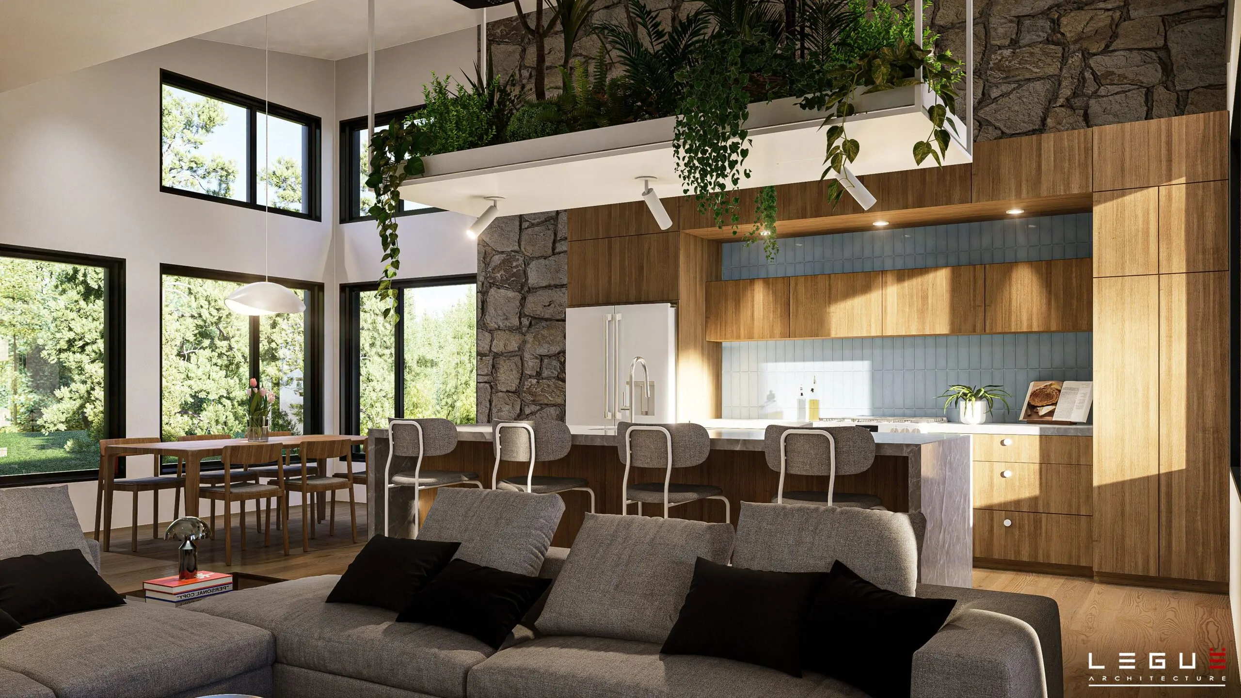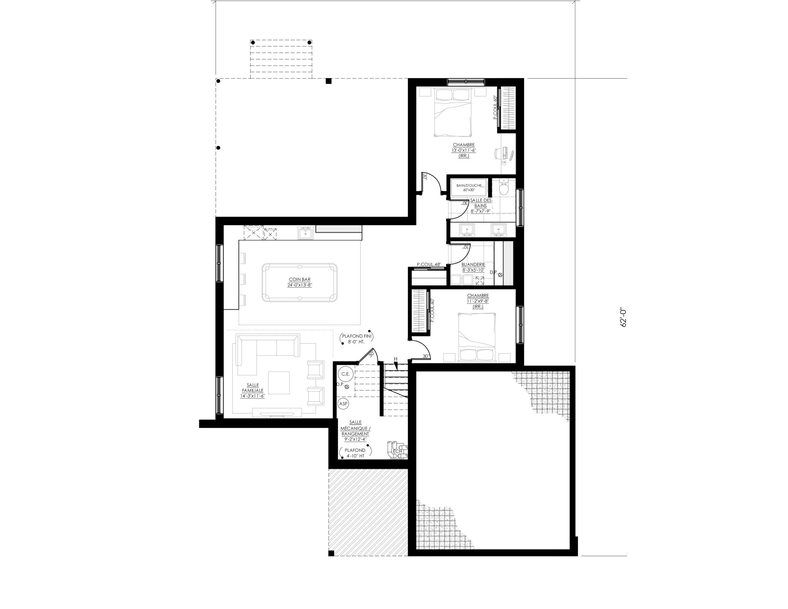 Le plan Ë_143 marie un style rustique et contemporain qui s’intègre à merveille dans les secteurs boisés ou en pleine nature. Ce concept plain-pied propose une aire ouverte pour les pièces de vie, salle de bain complète et deux chambres, dont celle des maîtres avec un grand walk-in. Le sous-sol pourra quant à lui être aménagé selon vos besoins. Deux ou trois chambres supplémentaires peuvent y être prévues.
