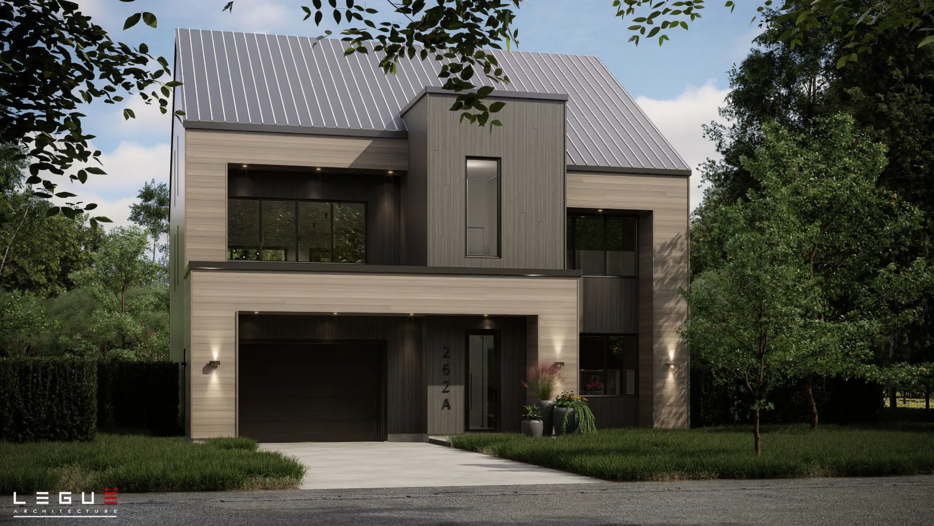 Ce plan se distingue par sa flexibilité. Pour les familles n’ayant pas besoin d’un logement d’appoint, le rez-de-chaussée peut être reconfiguré en chambre supplémentaire, en garage élargi, en bureau à domicile ou en atelier. Comme tous les plans signés Leguë Architecture, le Ë_262A peut être adapté afin de répondre précisément aux besoins du client, tant sur le plan fonctionnel qu’esthétique.