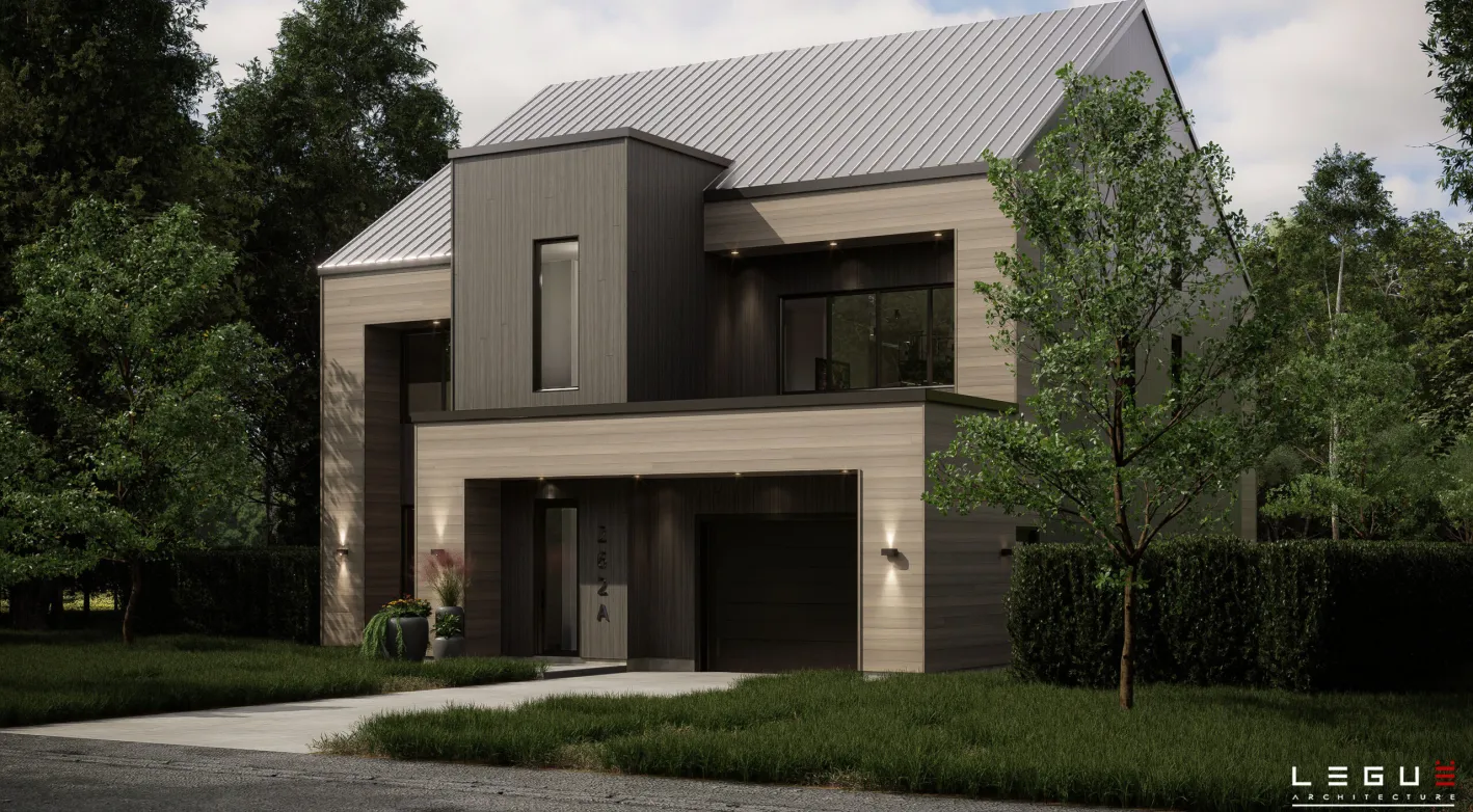 Le plan Ë_262A propose un concept architectural unique conçu sur trois niveaux, permettant l’intégration d’un logement bigénération au niveau du sol tout en réduisant la surface de construction et en optimisant le budget. Sa version contemporaine se distingue par une volumétrie moderne, une composition épurée et des espaces parfaitement organisés pour répondre aux besoins des familles multigénérationnelles ou des foyers recherchant une flexibilité d’aménagement.